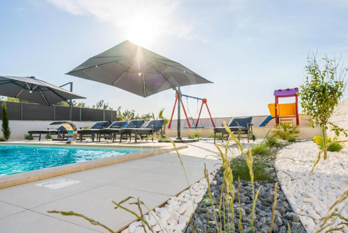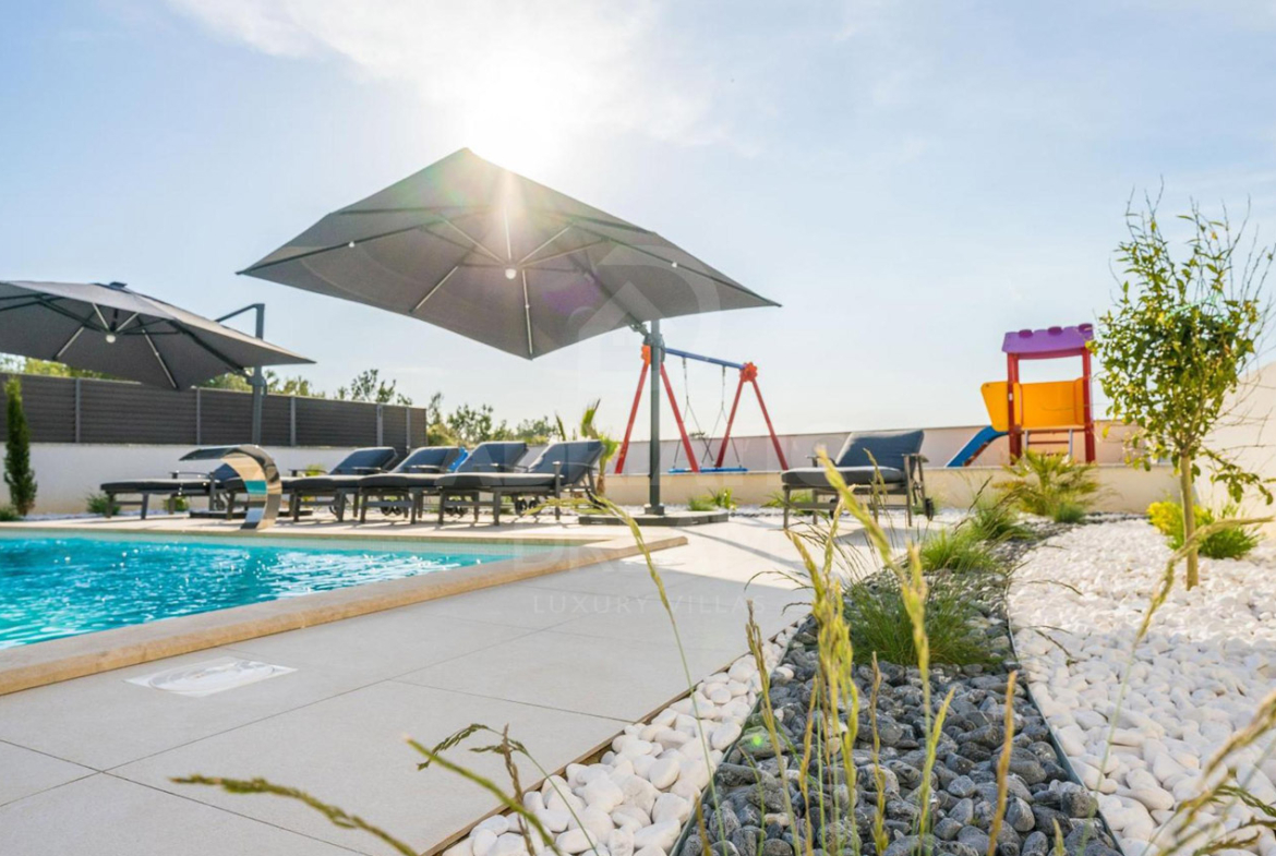 For sale: an exceptional modern villa in Zaton, beautifully designed and furnished with impeccable attention to detail. Every element, from the stylish interior to the meticulously landscaped garden, reflects elegance, comfort, and functionality.