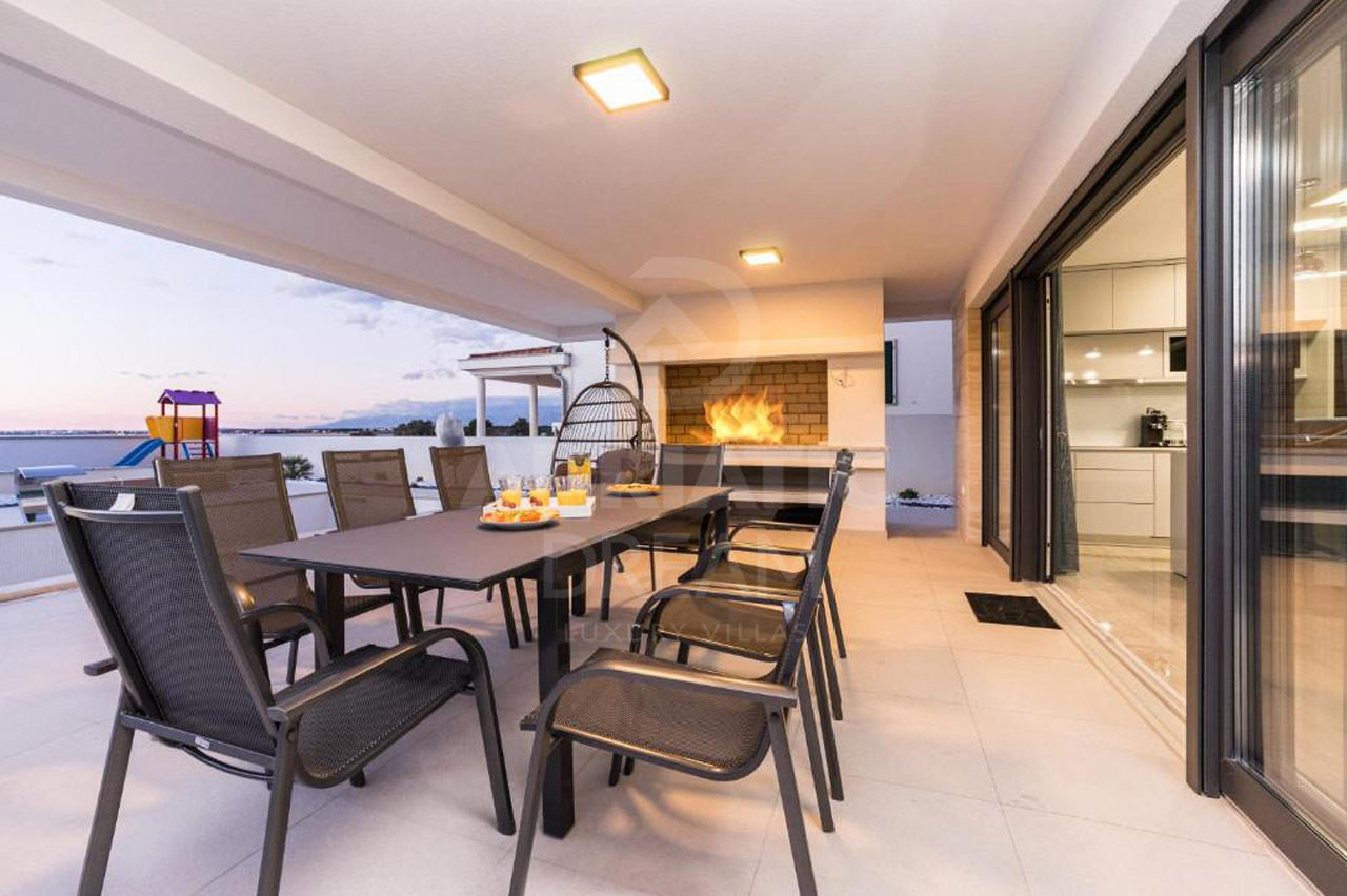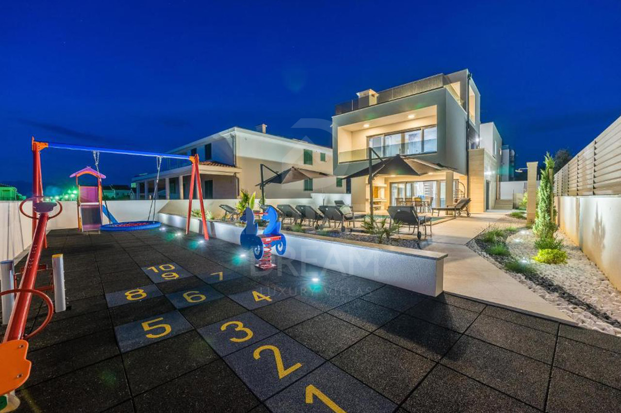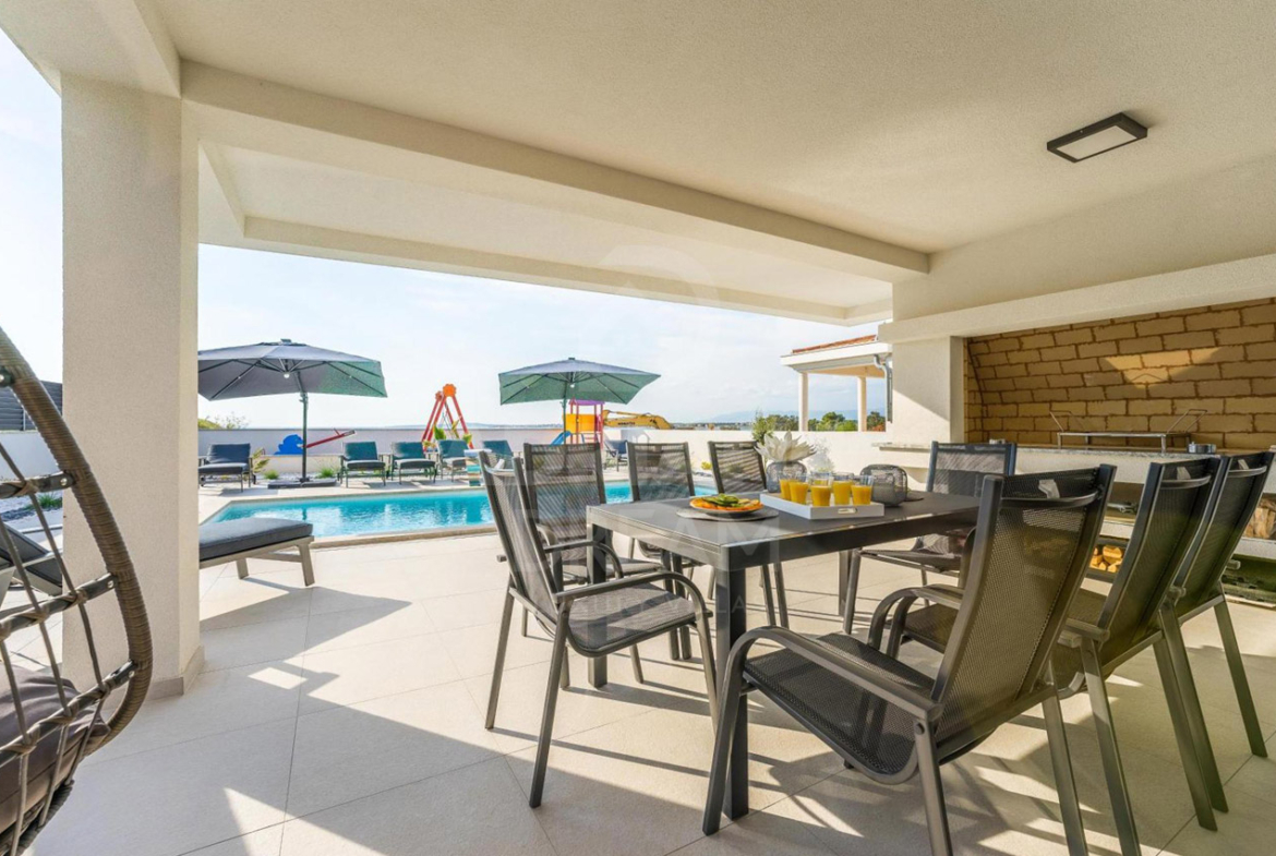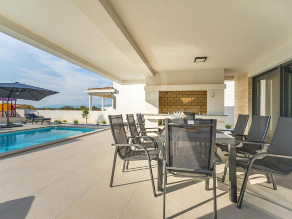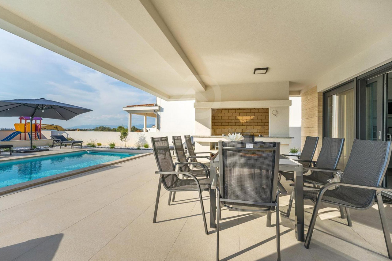 This unique property stands out not only for its modern architecture and refined design but also for its exceptional location. The villa offers direct access to both pebble and sandy beaches, while shops, public transport, ATMs, and essential amenities are nearby. The historic towns of Nin and Zadar are within easy reach, combining exclusivity with everyday convenience.