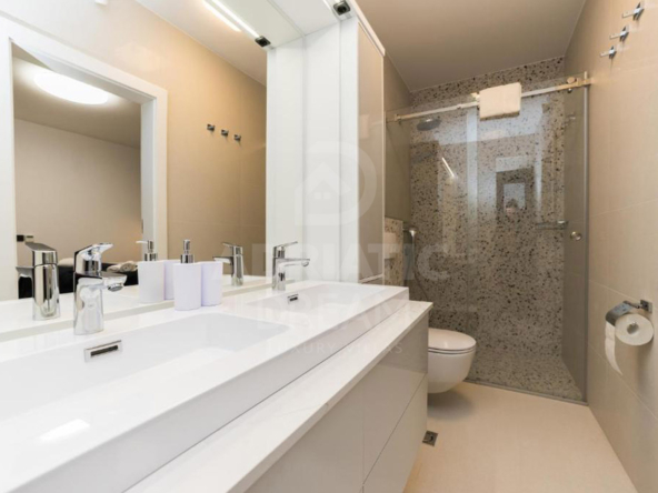 A solid oak staircase (4 cm thick) leads to four comfortable bedrooms, each with its own en-suite bathroom. Two bedrooms open onto balconies with stunning sea and nature views. The master suite features a private wardrobe. All rooms are equipped with custom-made furniture designed for comfort and practicality.
