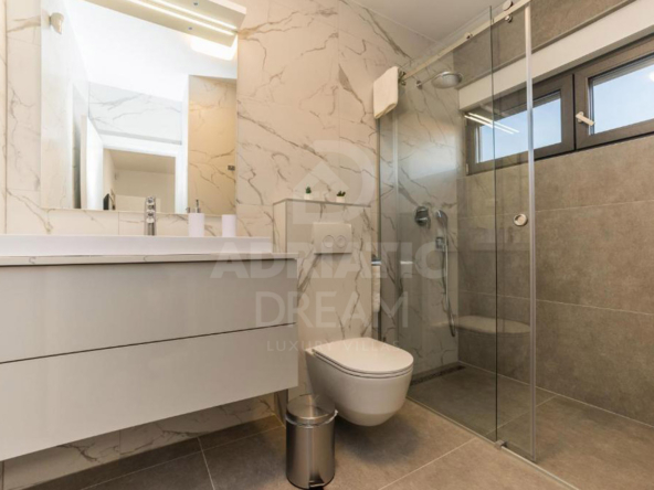 Situated in a quiet and highly attractive location just 100 meters from the sea, this villa offers breathtaking views of the Adriatic and surrounding greenery from every level — the ground floor, the first floor, and the spacious roof terrace.